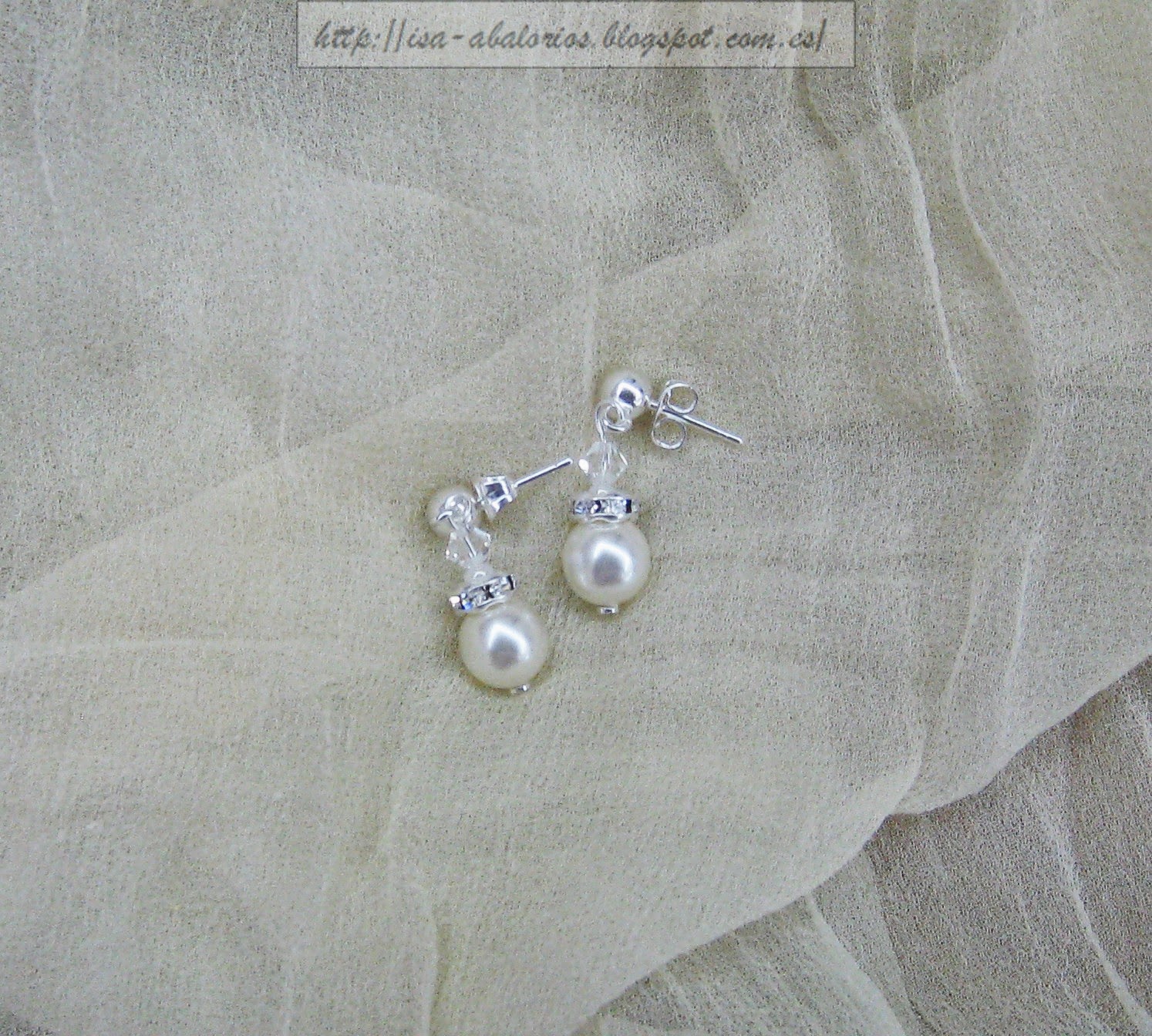 Pendientes con cuenta swarovski, pieza metálica con strass y perla.